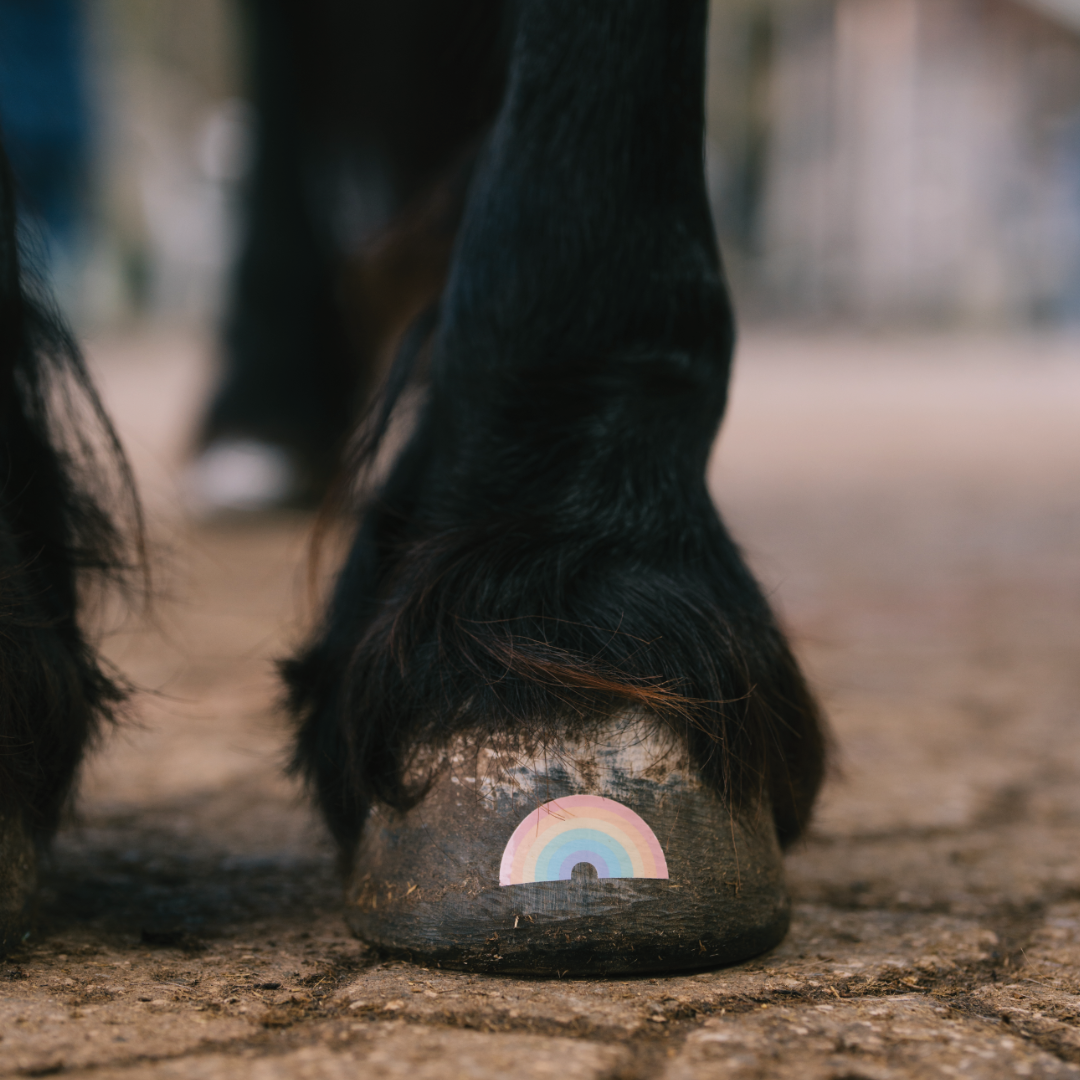 Regenbogen pastell – wähle deine Farbe und wähle die Größe des Hufs deines Pferdes.